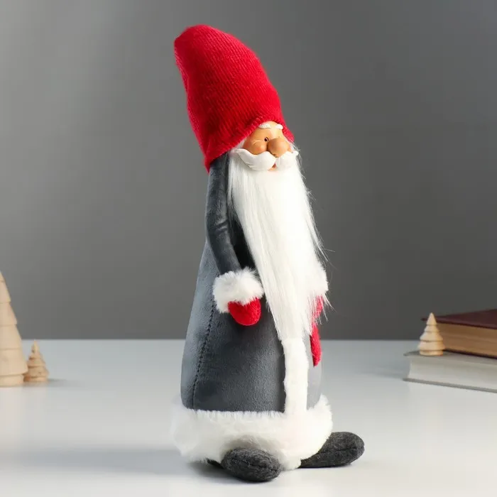 Кукла интерьерная "Дедушка Мороз в серой шубе и красном колпаке-шапке" 55х15х16 см — Характеристики