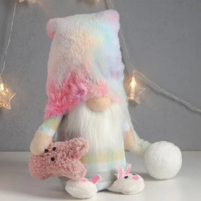 Кукла интерьерная "Гном в пижаме и тапочках, с игрушкой-зайкой" 57х13х13 см — Характеристики