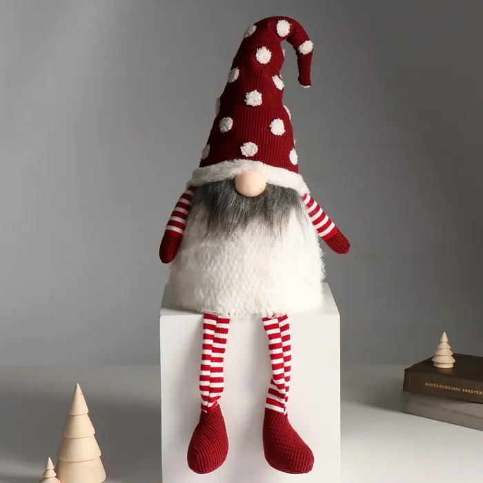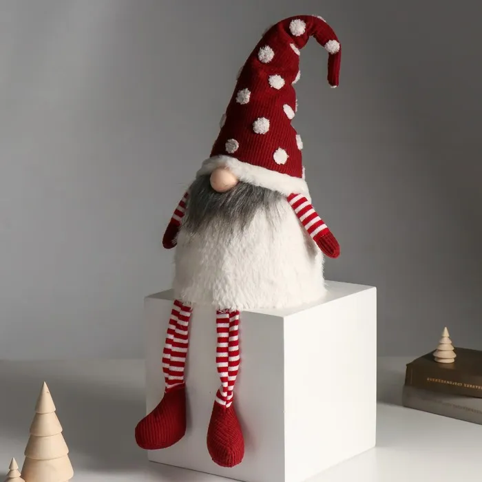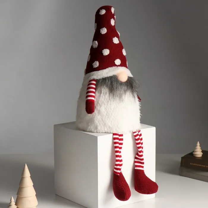 Кукла интерьерная свет "Гном в красном колпаке в горошек" длинные ножки 22х16х65 см — Характеристики