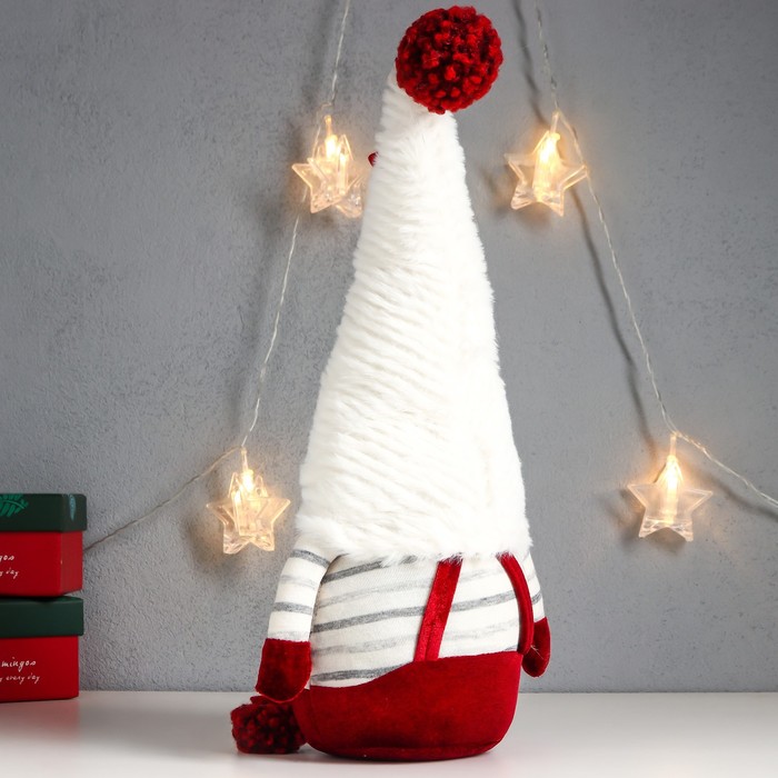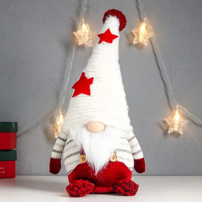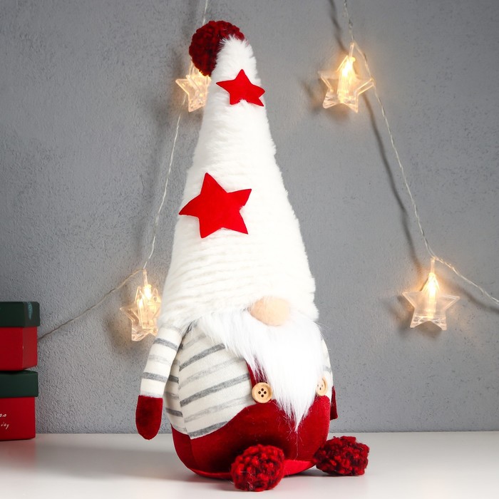 Кукла интерьерная текстильная «Дед Мороз в красном комбинезоне, в колпаке со звёздами», 35×16×14 см — Характеристики