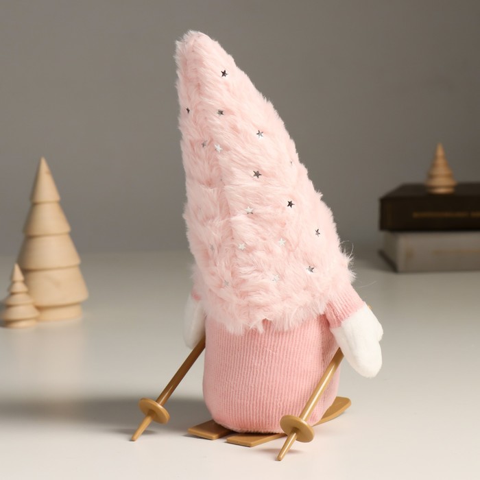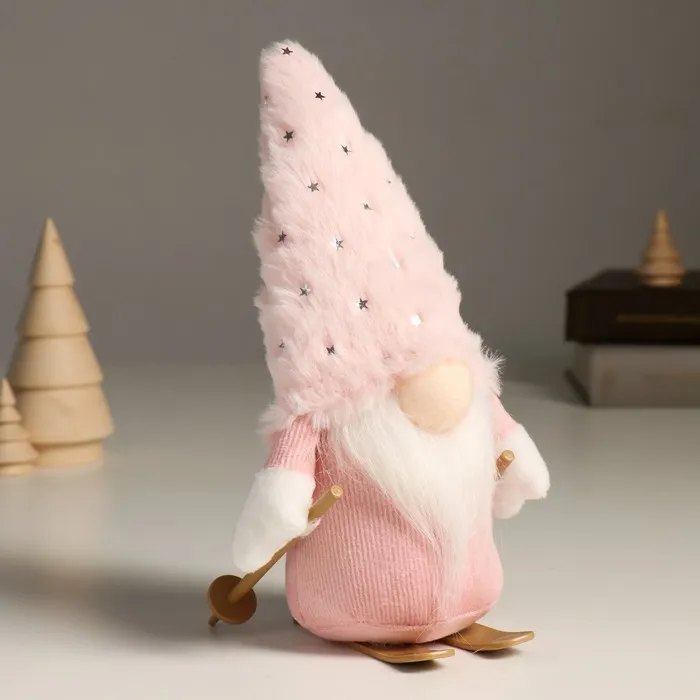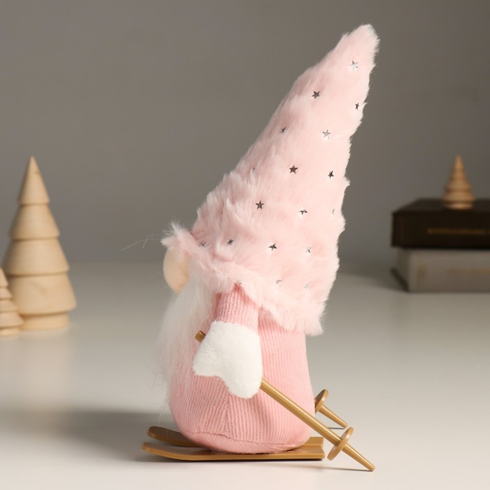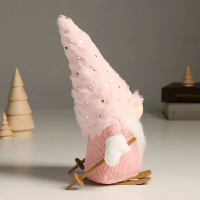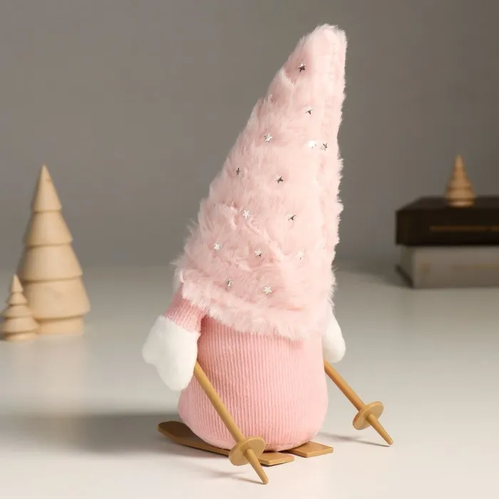 Кукла интерьерная текстильная «Гном в розовом с лыжными палками на лыжах», 24 см — Характеристики