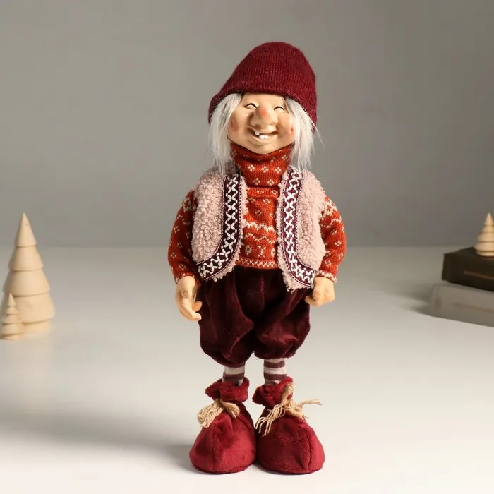 Кукла интерьерная текстильная «Леший в вязаном свитере и меховой жилетке», 42 см — Характеристики