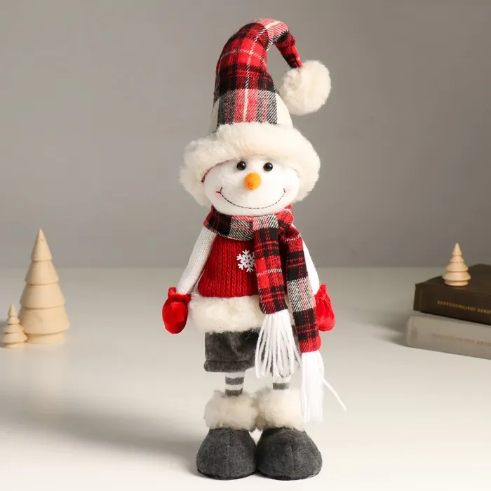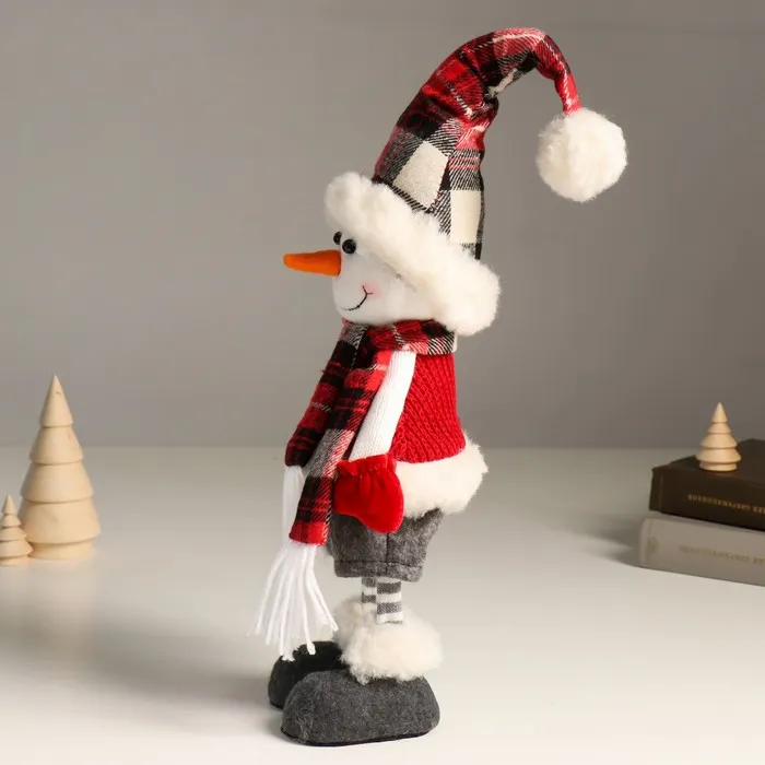 Кукла интерьерная текстильная «Снеговик в жилете со снежинкой и клетчатом колпаке», 44 см — Характеристики