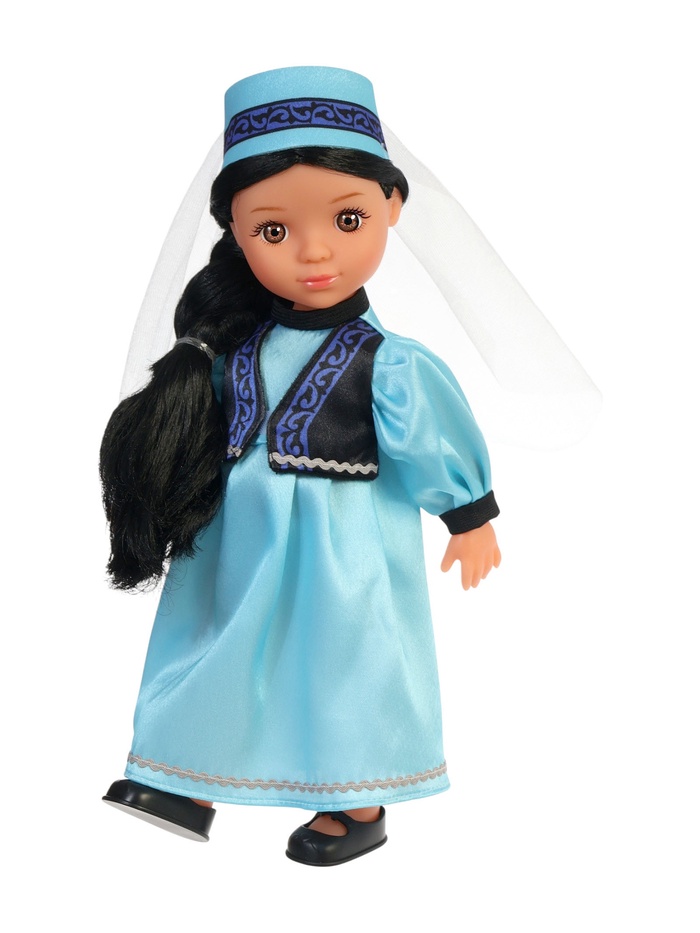 Классическая кукла в татарском народном костюме выглядит как героиня из тёплой семейной истории. Традиционный наряд с аккуратной отделкой сразу задаёт настроение игре и делает образ по-настоящему выразительным.