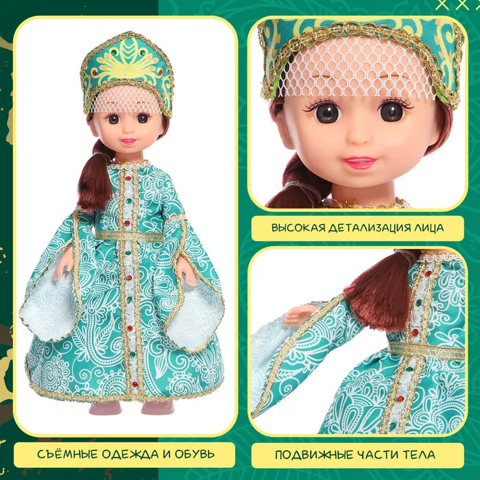 Кукла классическая «Малахитовая царевна», в платье и кокошнике — Характеристики