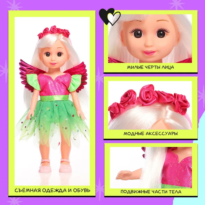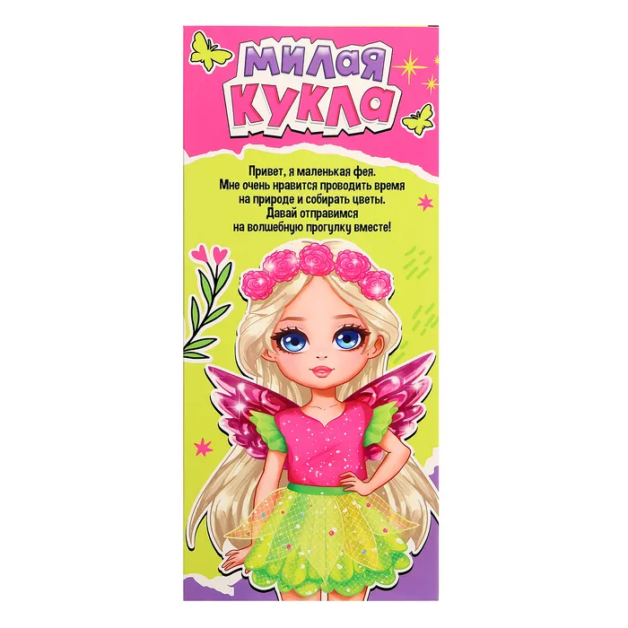 Кукла «Милая: фея» — игрушка, которая позволяет ребёнку окунуться в захватывающий мир сказок и волшебства. Она станет идеальным компаньоном в играх и развлечениях вашего малыша.