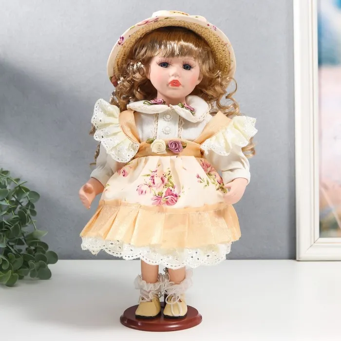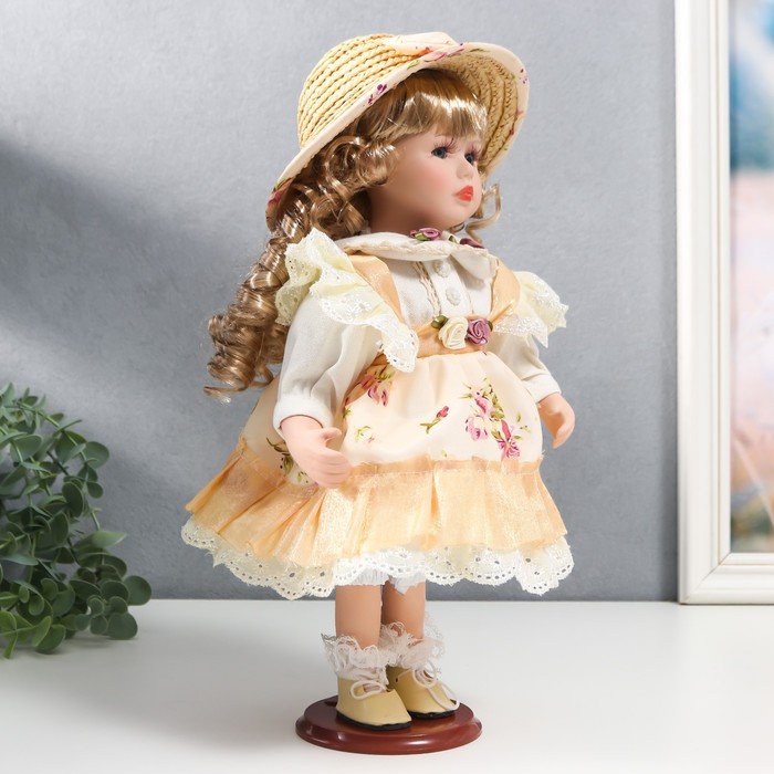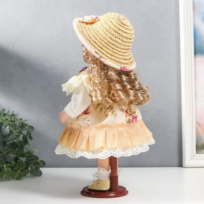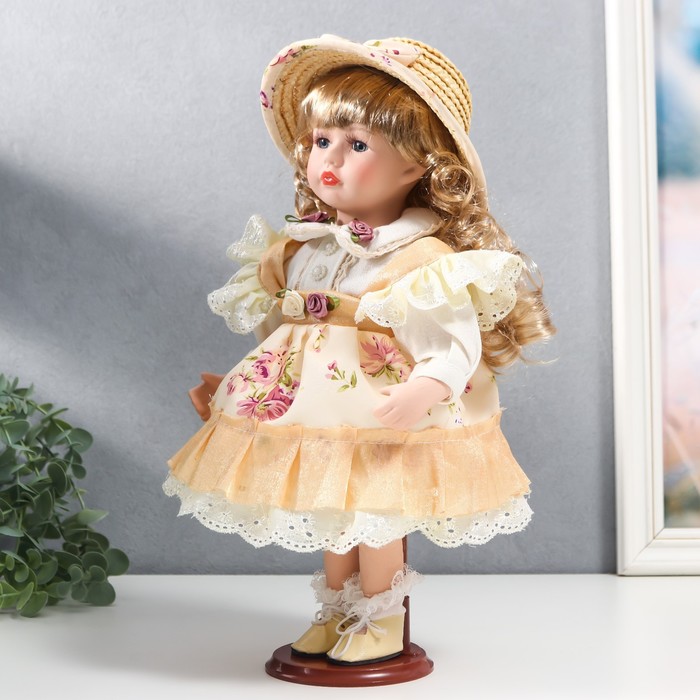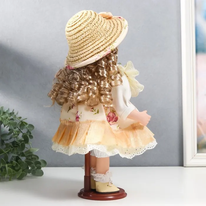 Кукла коллекционная «Алиса в жёлтом платье с цветами, в соломенной шляпке», 30 см — Характеристики