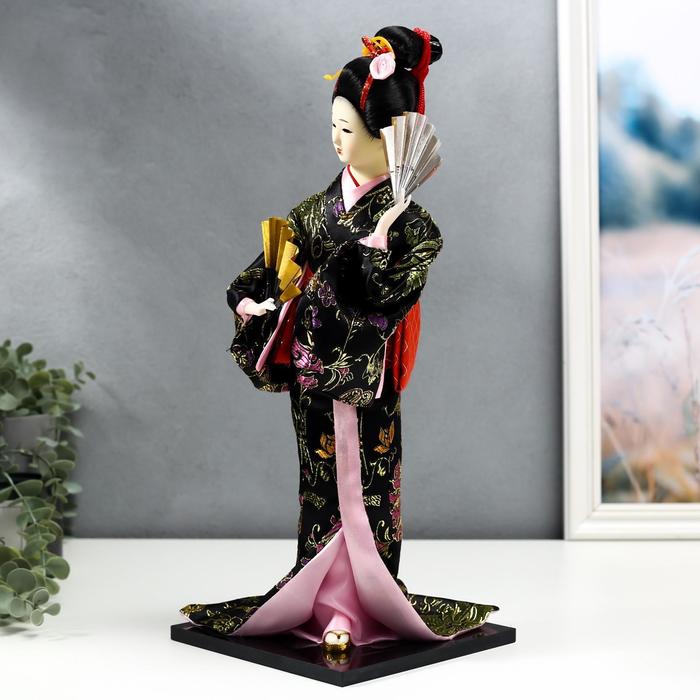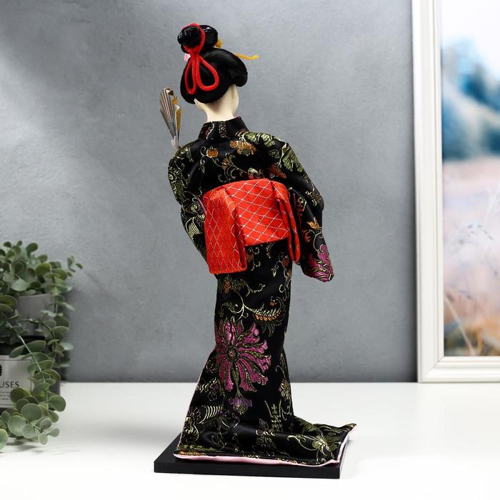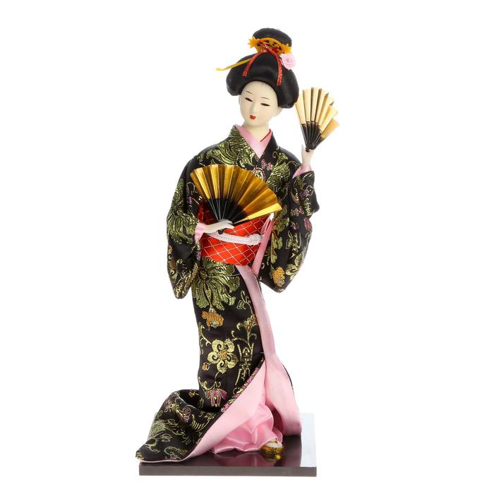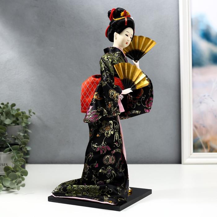 Кукла коллекционная «Гейша в чёрно-золотом кимоно с веерами», 40 см — Характеристики