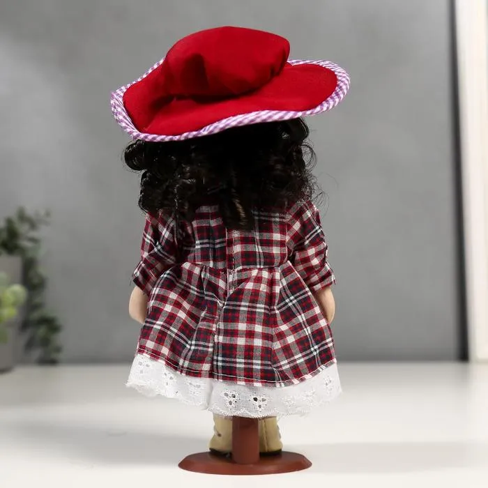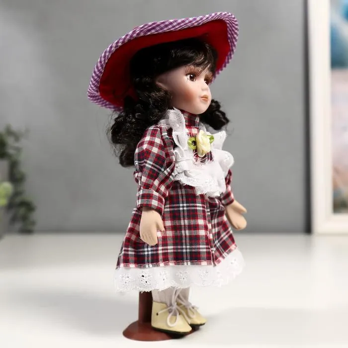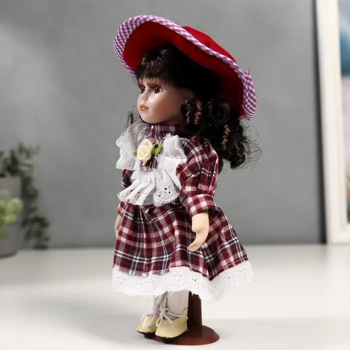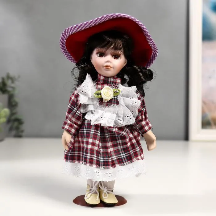 - Современный стиль: клетчатое платье придаёт ей модный вид, идеально подходящий для выставления на полке или в витрине.