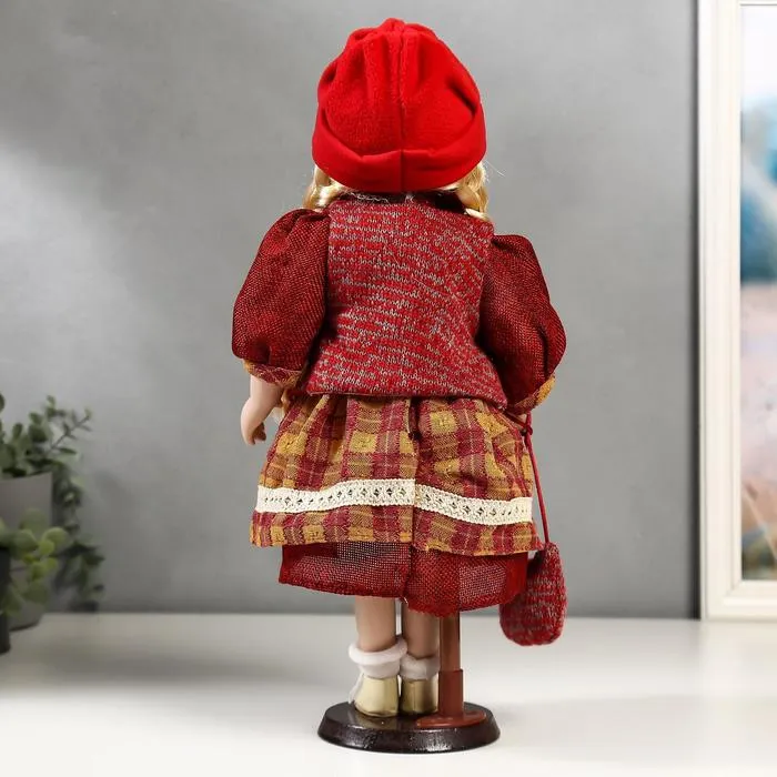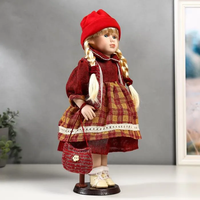 Кукла коллекционная «Марина в бордовом платье в клетку», 40 см — Характеристики