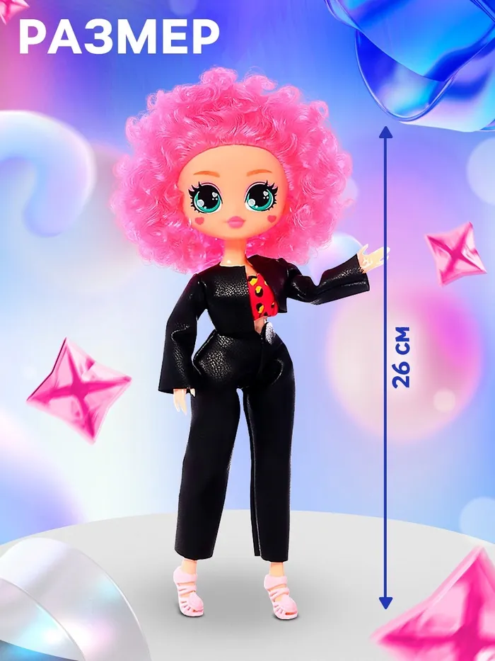 - Кукла высотой 26 см с кудрявыми ярко-розовыми локонами, которые можно расчёсывать и создавать стильные причёски.
