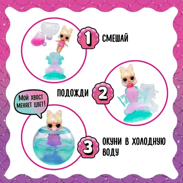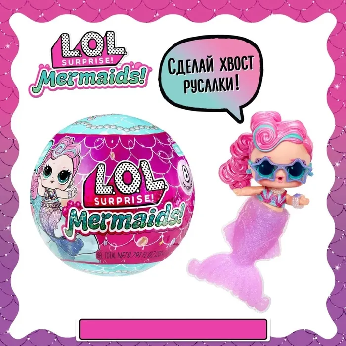 Познакомьтесь с новой коллекцией ЛОЛ СЮРПРАЙЗ Mermaids! Эти мини-куклы с русалочьими хвостами дарят захватывающий опыт игры, который понравится каждой маленькой мечтательнице. Набор «Кукла в шаре Mermaids» удивит не только уникальным образом, но и увлекательным процессом создания сказочного хвоста.