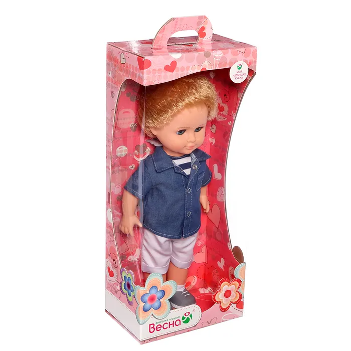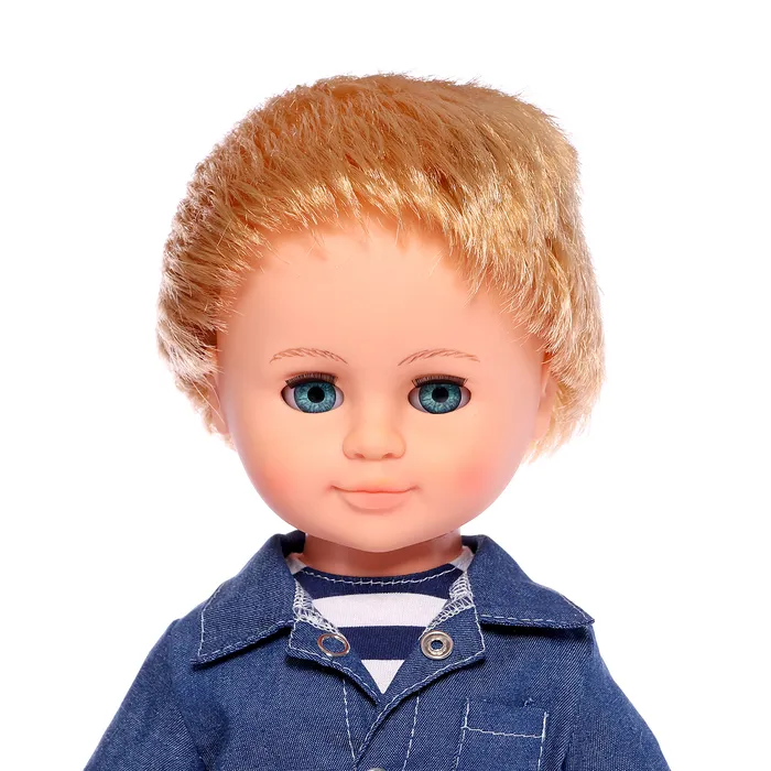 У куклы «Мальчик 5» прошитые волосы из качественного нейлона, которые можно расчёсывать. Кукла имеет рост 42 см. Глаза вставные и закрывающиеся. Руки и голова выполнены из эластичного и приятного на ощупь винила, а туловище и ноги из пластмассы.