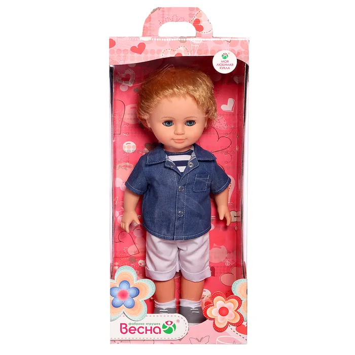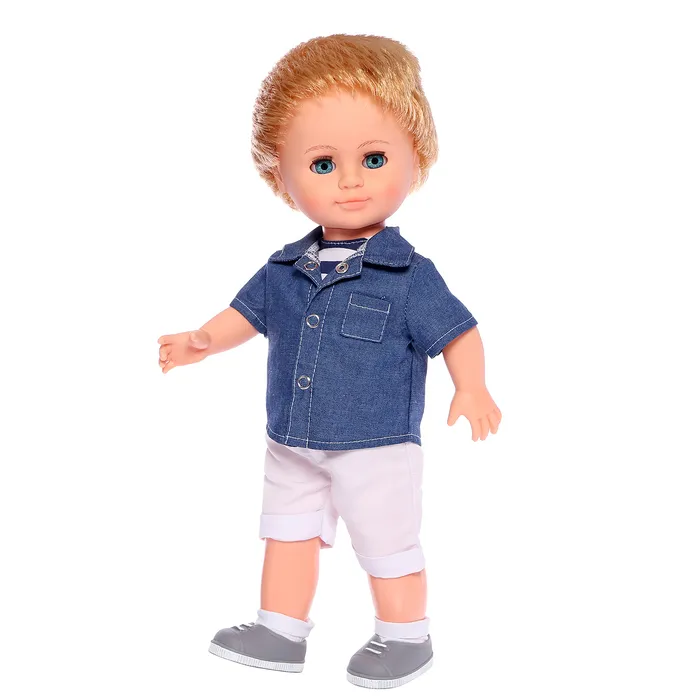 «Мальчик 5» из серии «Моя любимая кукла» может стать настоящим другом для ребёнка. Его комплект одежды состоит из стильной рубашки с короткими рукавами, отложным воротником и застёжкой спереди на 3 пуговки. Также в комплекте трикотажная футболка с короткими рукавами, шорты из джинсовой ткани, модные кроссовки и трикотажные носки.