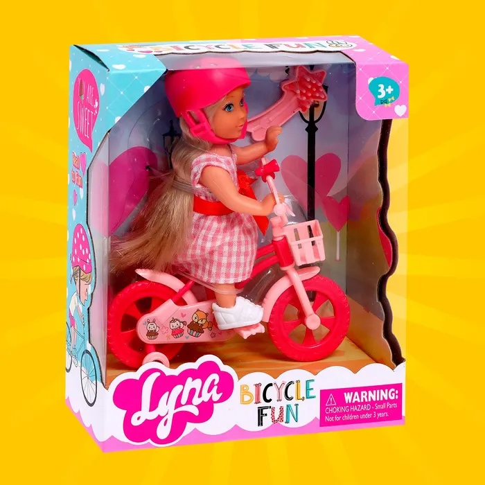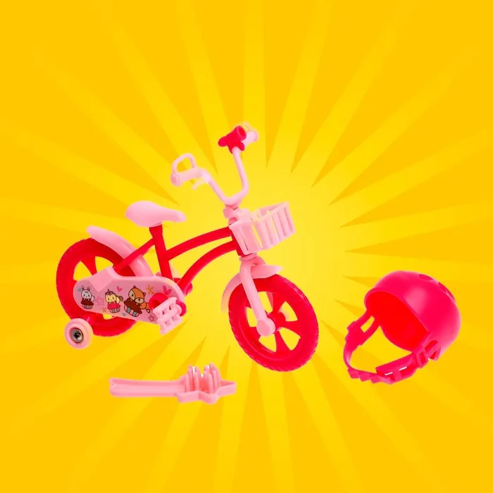Высота куклы: 11 см. В комплекте есть велосипед и шлем. С ними сюжетов для весёлой игры будет больше.