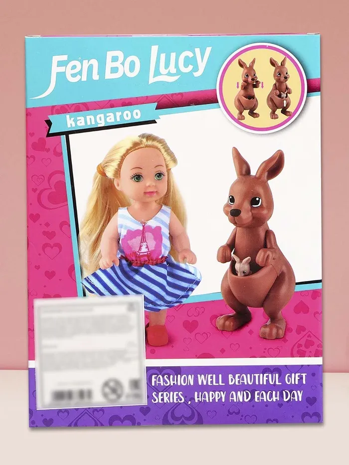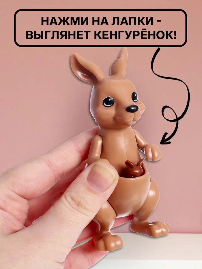 - Куколка высотой 11,5 см и кенгуру высотой 10,5 см — компактные и удобные для детских ручек.