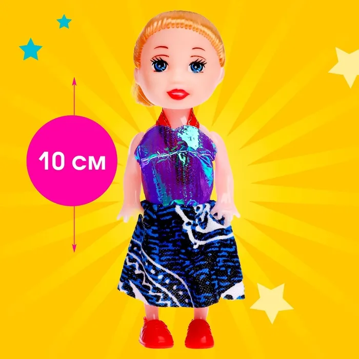 Нарядная кукла-малышка станет любимым пупсиком вашего ребёнка. Игрушка подойдёт в качестве приятного мини-сюрприза малышу или памятного подарка от именинника друзьям.