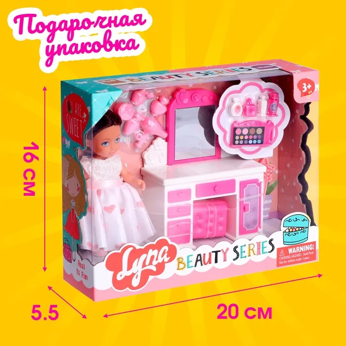 Кукла малышка Парикмахер Lyna с набором мебели и аксессуарами, МИКС — Характеристики