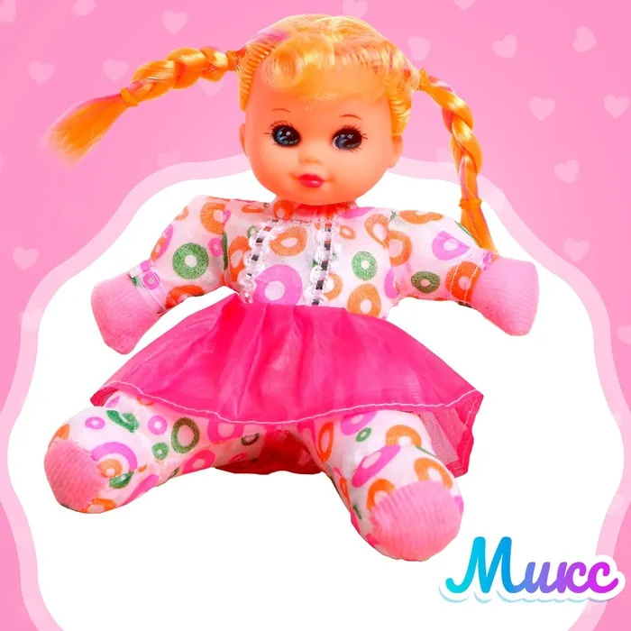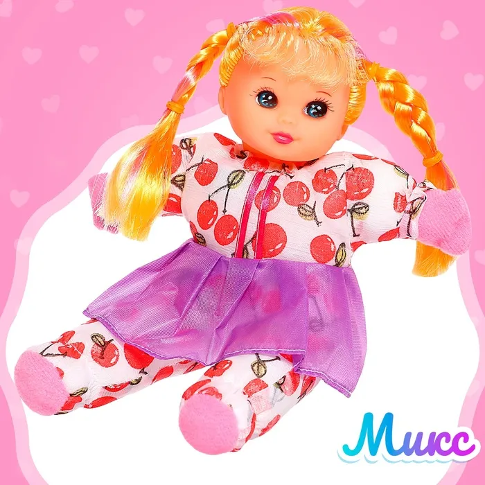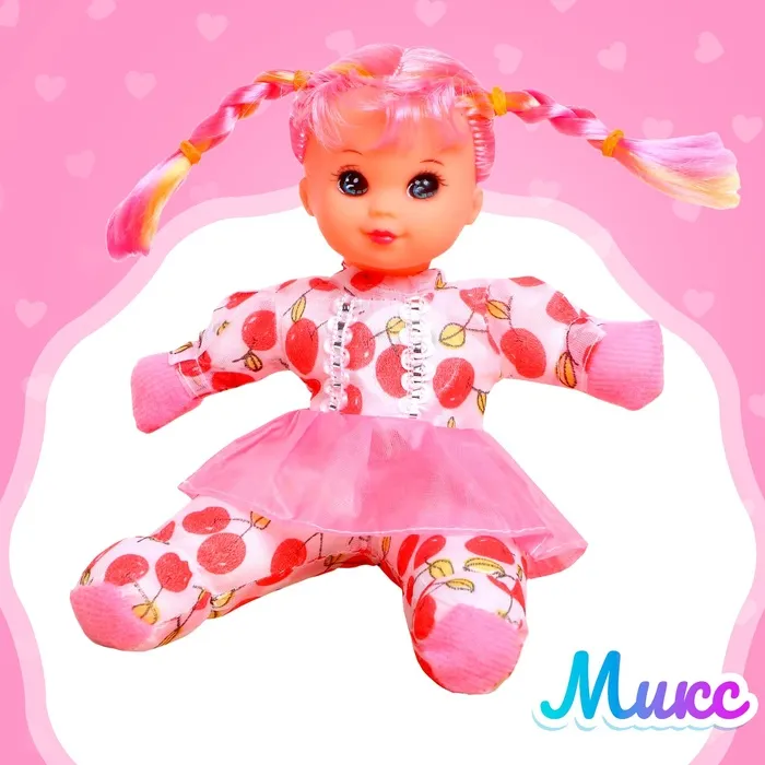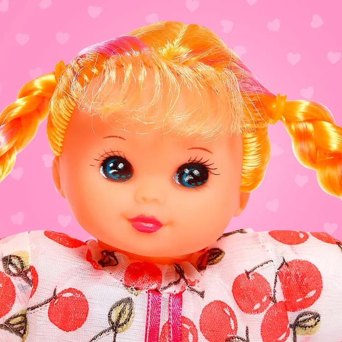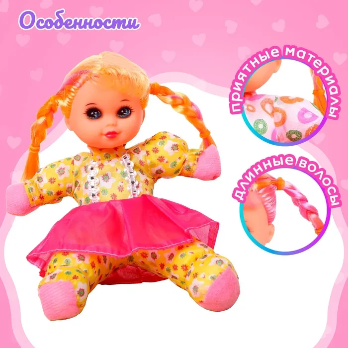 Яркая мягконабивная куколка порадует малышку. Она музыкальная: воспроизводит одну весёлую мелодию. В комплекте есть 1 батарейка типа CR2032.