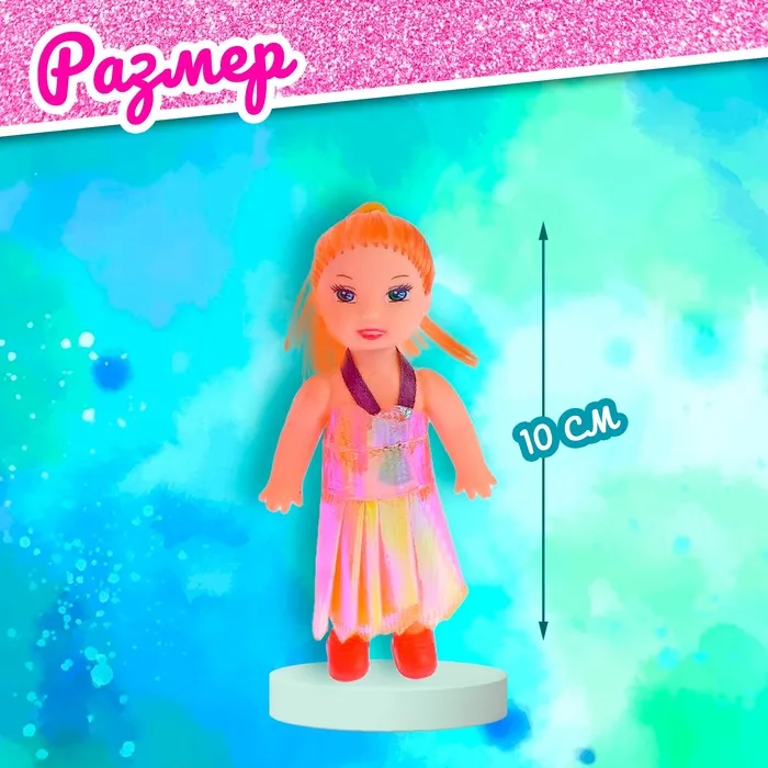 В комплекте есть куколка-малышка. Размер: Здравствуйте. Да, кукла-малышка идёт в комплекте. Размер: 2,5 × 2,5 × 10 см.