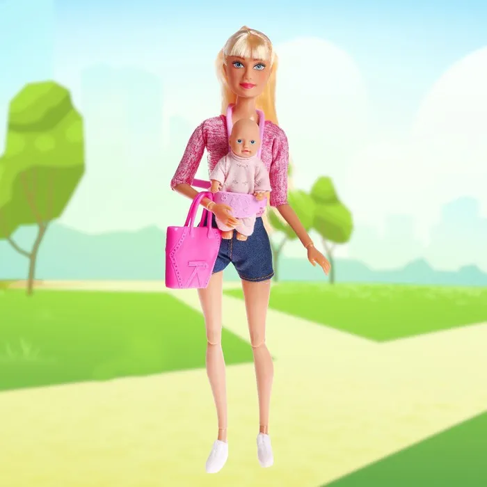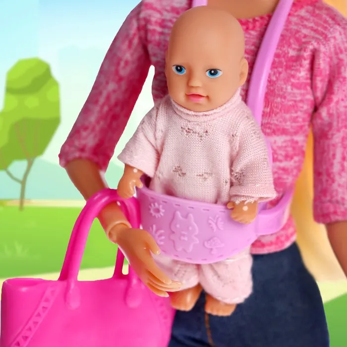 Кукла модель «Молодая мама», с пупсом, с аксессуарами, цвет розовый — Характеристики