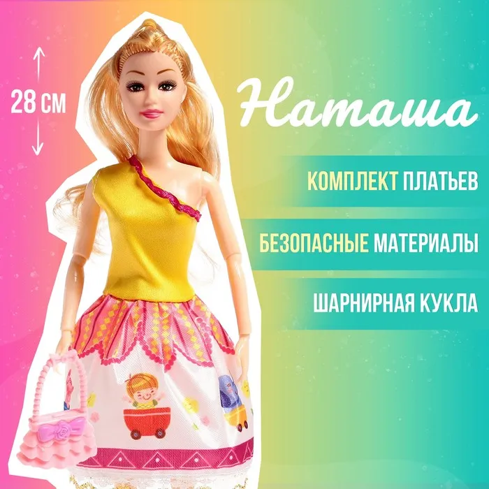 - Кукла шарнирная в плечах, локтях, кистях рук, бёдрах, коленях и щиколотках, что позволяет придавать ей естественные позы и делает игру более увлекательной.
