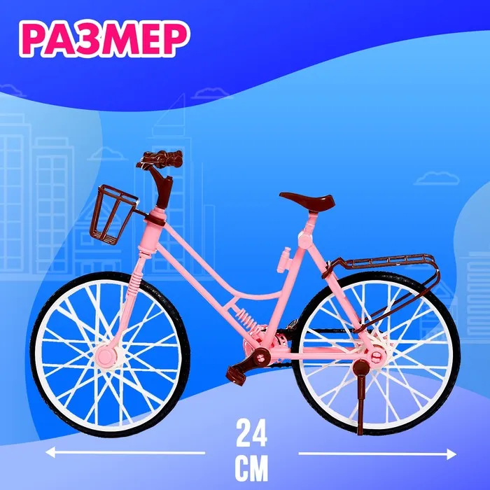 Куклы пластиковые, не шарнирные. Колёса велосипеда крутятся.