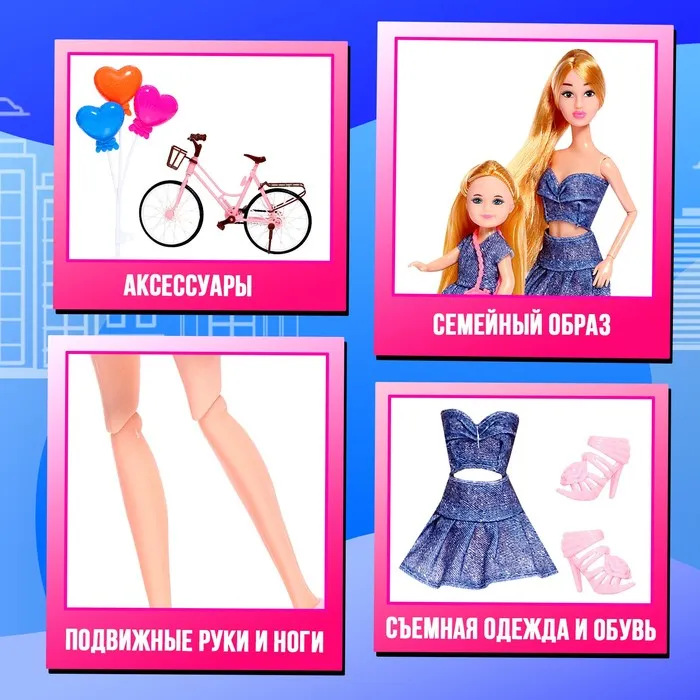 Кукла-модель шарнирная, с дочкой, Family Look на велосипеде — Характеристики