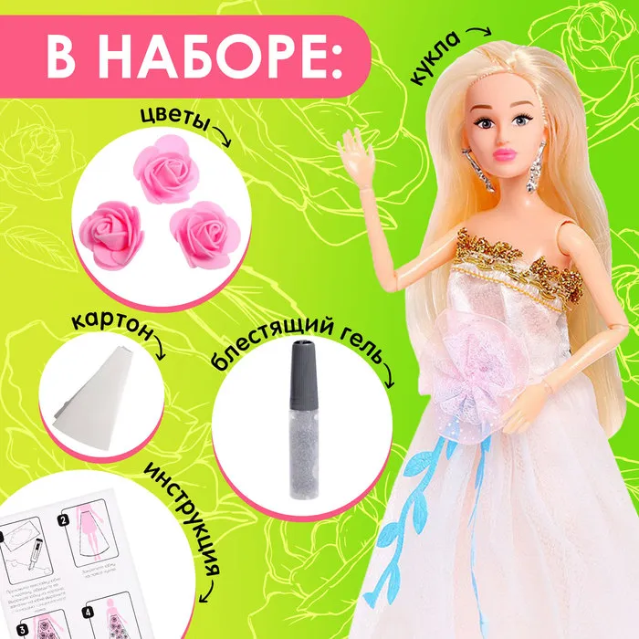 Ваша принцесса любит модничать? Тогда от этого набора она будет в восторге! Вместе с куклой «Цветочная принцесса Флори» малышка самостоятельно украсит одежду для неё и узнает секреты рукоделия, а также разовьёт мелкую моторику ручек и фантазию. Помогите ребёнку создать волшебное платье из заготовок, которые есть в комплекте с игрушкой.