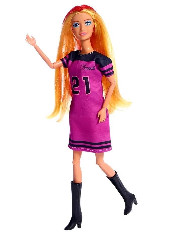 - Кукла выполнена в виде модной девочки с длинными волосами, которые можно расчёсывать и укладывать.