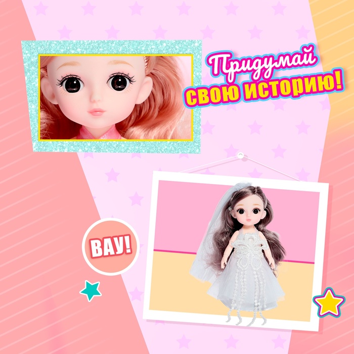 - Платье снимается. Ребёнок сможет придумать для куколки новые наряды.