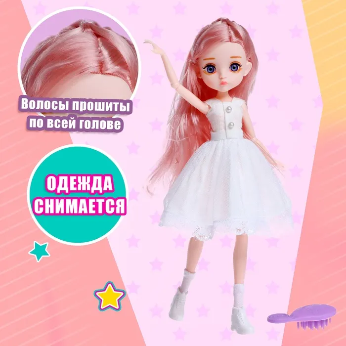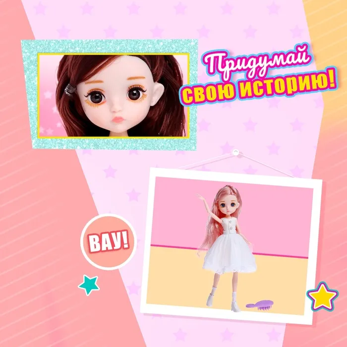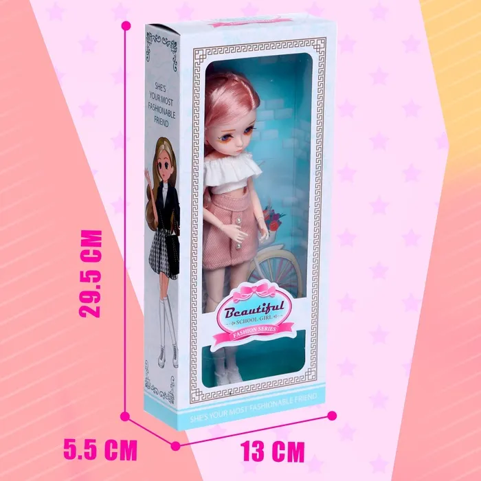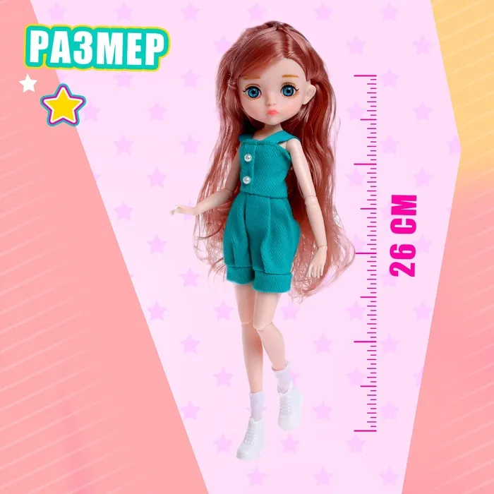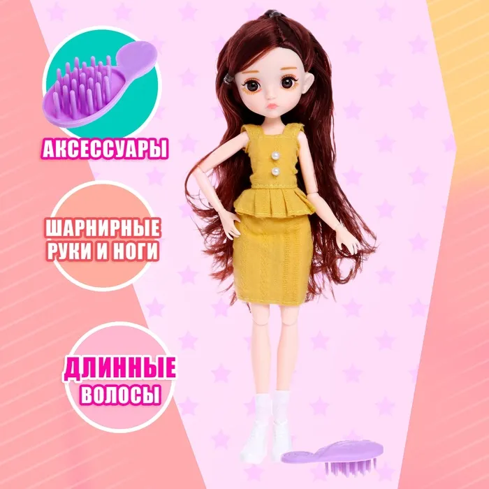 Игрушка на шарнирах, поэтому способна принять почти любую человеческую позу. В комплекте резиночка и заколка.
