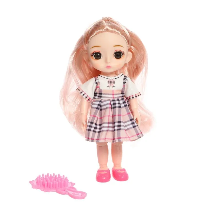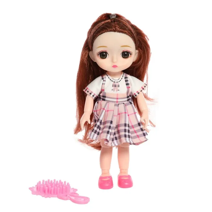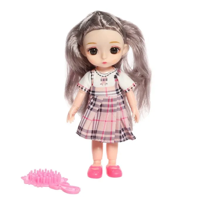 Кукла шарнирная полностью, высота — 14,5 см. В комплекте есть расчёска.