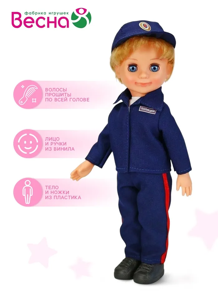 Кукла «Полицейский» станет желанным подарком для юных любителей полиции. С ней игры будут весёлыми и полезными!
