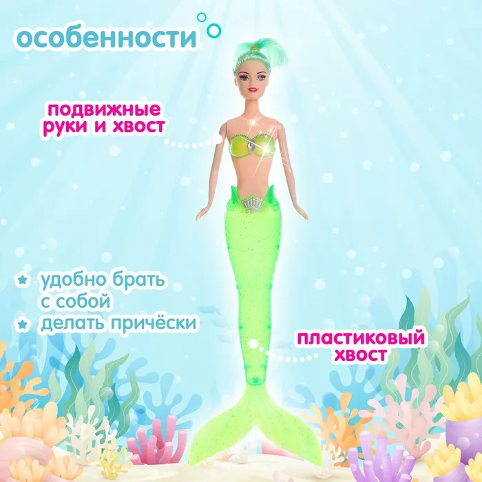 Кукла «Русалочка» хвост светится, МИКС — Характеристики