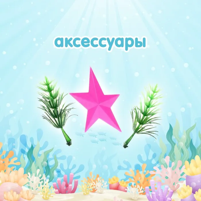 - В комплект входят украшения в виде водорослей и яркой морской звезды.