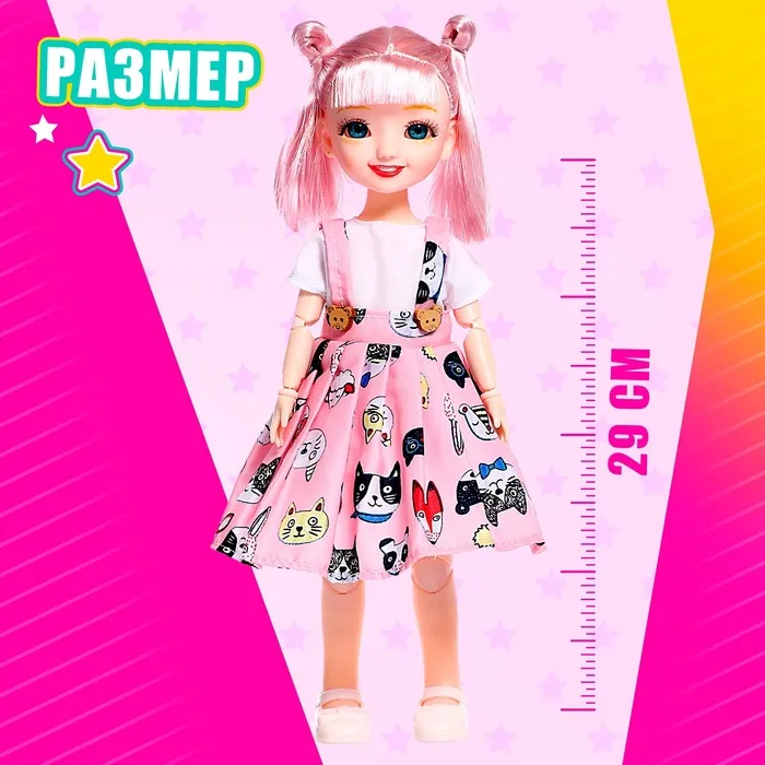 Игрушка станет желанным подарком для каждой маленькой принцессы. Она шарнирная, что позволяет принять практически любую позу.