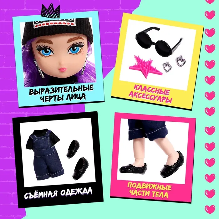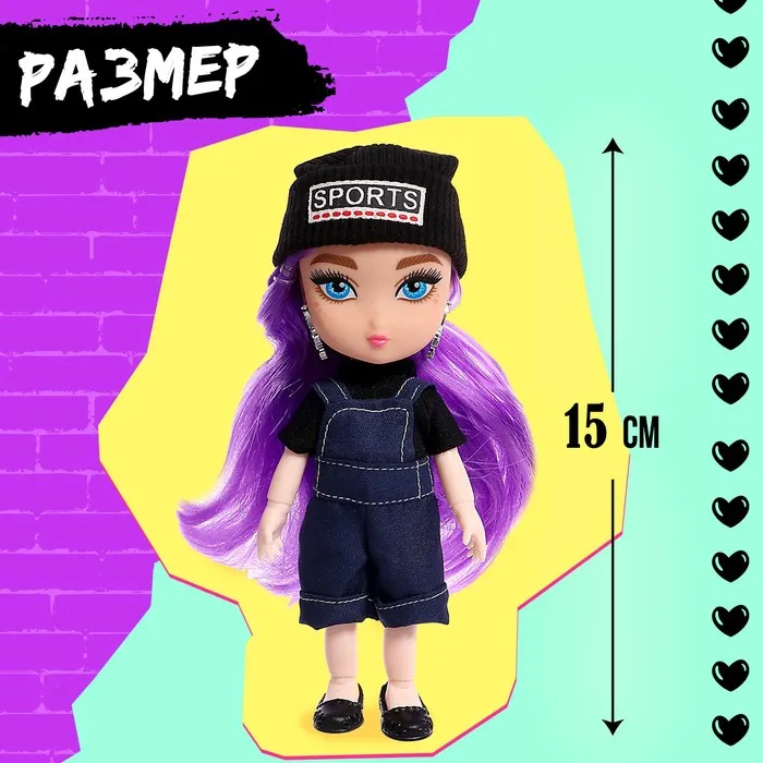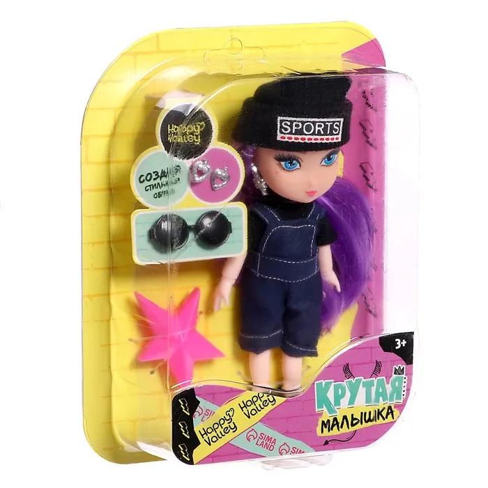 Кукла шарнирная «Крутая малышка» с аксессуарами, в джинсовом комбинезоне — Характеристики