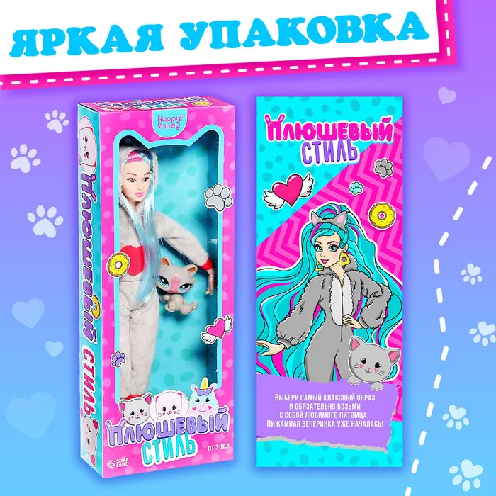 Ваша принцесса любит играть в куклы и ухаживать за животными? Тогда набор с куклой и питомцем точно порадует её! Ребёнок сможет придумать множество ярких сюжетов с кошечкой. Набор упакован в красочную коробочку, поэтому его можно вручить в подарок даже без дополнительной праздничной упаковки.