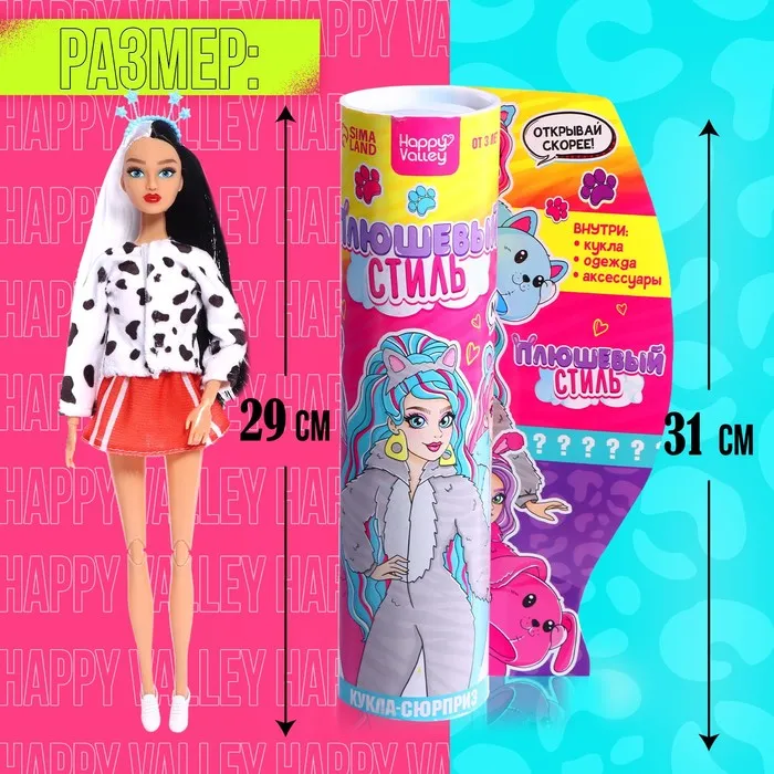 Каждая девочка мечтает о маленькой подружке. С куклой-сюрпризом «Плюшевый стиль» это желание легко исполнится! Внутри яркого тубуса скрывается настоящая модная красавица. Какая именно? Это сюрприз!