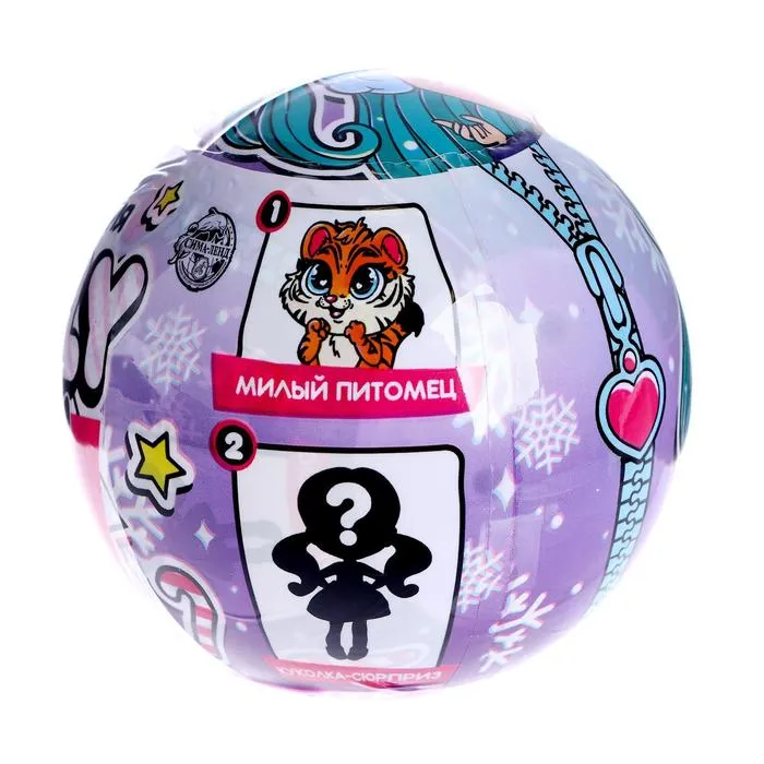 Игрушка-сюрприз в шаре — это увлекательное развлечение для детей, которое принесёт много радости и веселья. Внутри шара спрятана маленькая кукла и питомец, что добавляет элемент неожиданности и интриги.