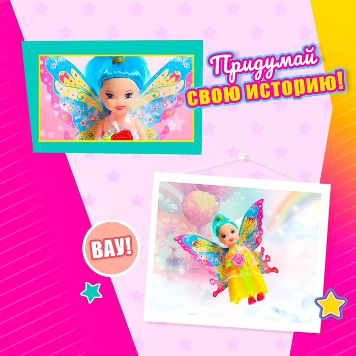Сказочная кукла в образе феи станет отличным дополнением к коллекции игрушек малышки. Её яркий волшебный образ дополняют подвижные руки и ноги, а также крылья, как у настоящей феи.