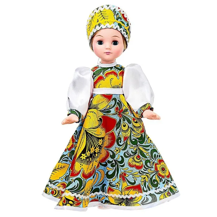 Кукла «Василина» в русском платье, украшенном эффектными узорами в стиле хохломской росписи, очарует любую девочку. Погрузитесь в удивительный мир народной культуры России с помощью этой куклы!