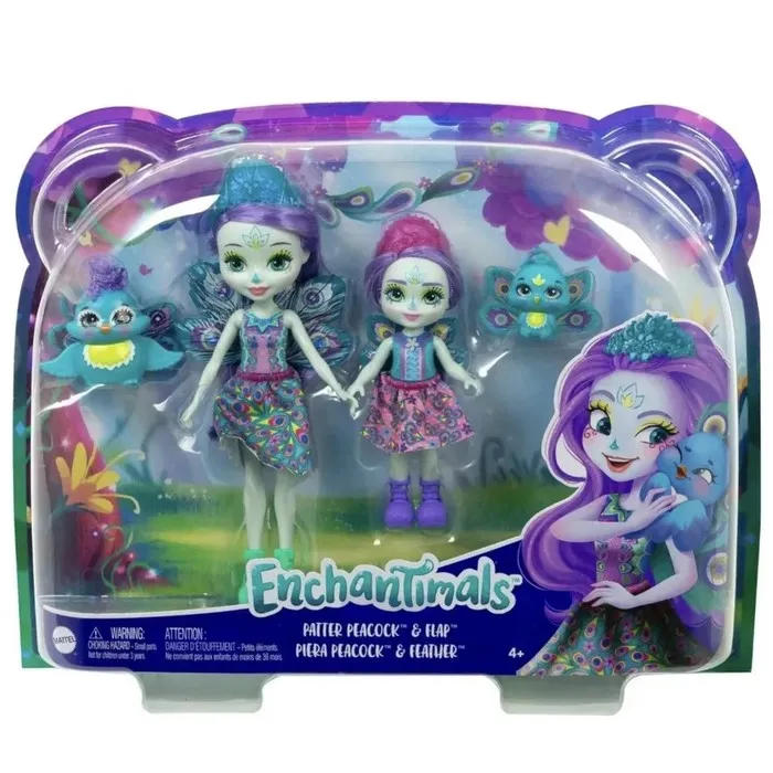 Куклы «Энчантималс. Пэттер Павлина с сестричкой и питомцами», набор 2 куклы, 2 питомца