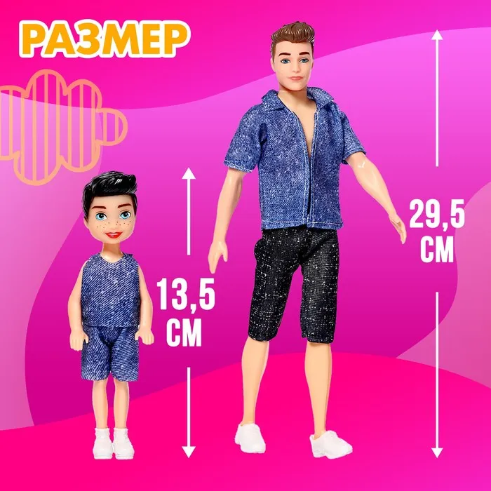 - В набор входят четыре куклы: мама — 29 см, папа — 29 см, сын и дочка — 13 см.
