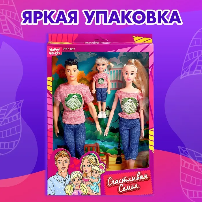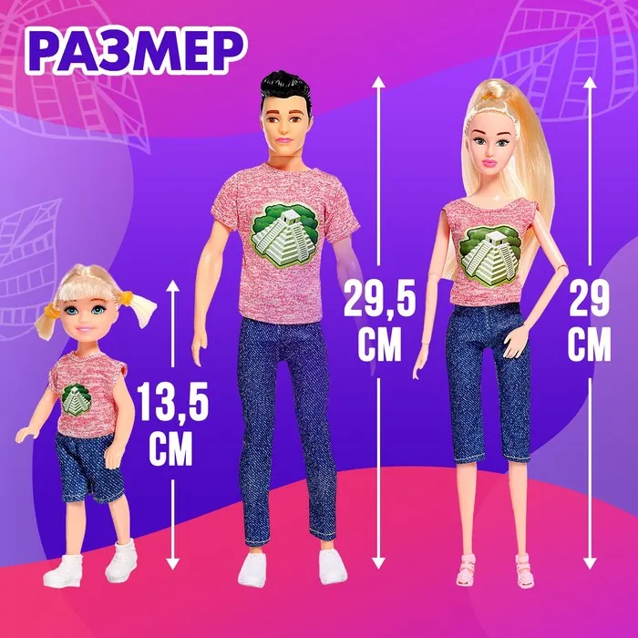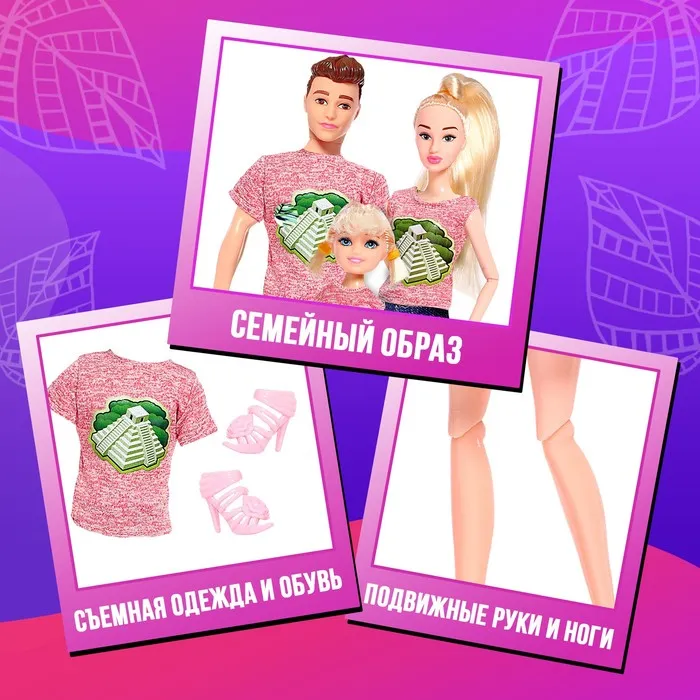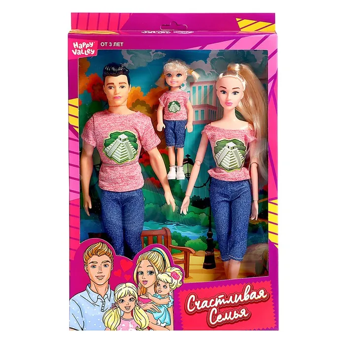 Порадуйте свою дочку целой кукольной семьёй. В наборе есть кукла-мама шарнирная, кен не шарнирный и дочка. Ваша девочка с удовольствием подружится с куколками, будет о них заботиться и осваивать социальные роли и модели поведения.