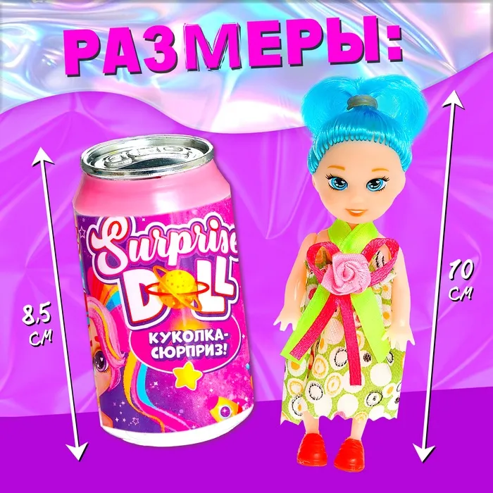 Куколка-сюрприз Surprise doll — это не просто игрушка, а целая коллекция ярких образов и стильных аксессуаров. Внутри каждой красочной баночки скрывается миниатюрная куколка с длинными волосами, которую можно укладывать в самые разные прически и заколочки.