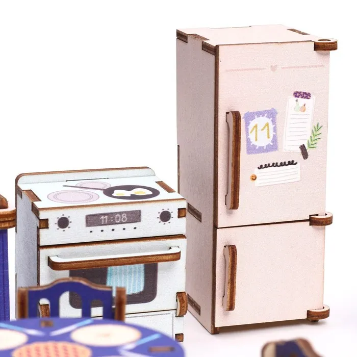 Этот набор не только развлекает, но и помогает развивать мелкую моторику, творческое мышление и навыки конструирования. Ребёнок сможет самостоятельно собрать мебель, а затем украсить её по своему вкусу, создавая уникальный интерьер для кукольной кухни. Идеальный подарок для девочек, которые любят играть в куклы и мечтают о маленьком мире, полном уюта и красоты.