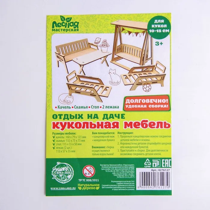 Собрать мебель очень просто: аккуратно выдавите из основы элементы и соедините между собой с помощью специальных пазов. Набор также можно использовать как основу для творчества: детали можно расписать вместе с ребёнком маркерами или акриловыми красками.