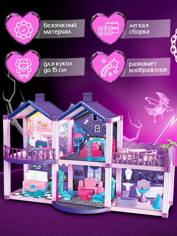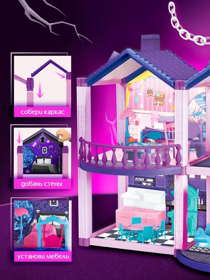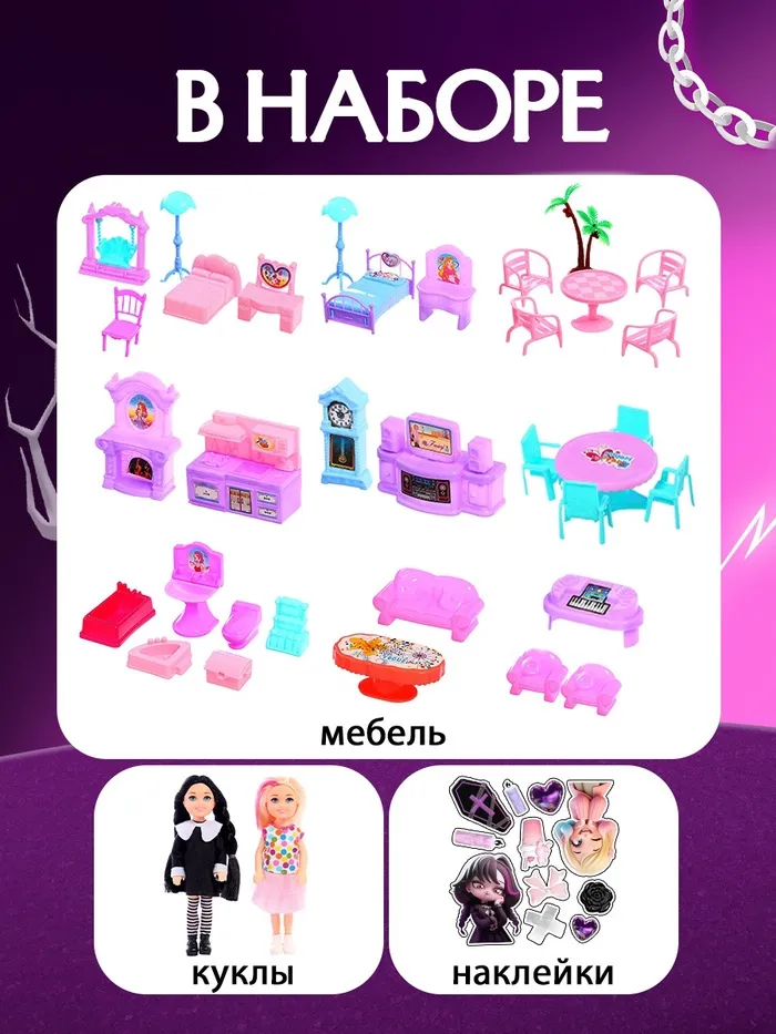 Кукольный дом «Тёмный домик», 2 куклы, мебель, аксессуары — Характеристики